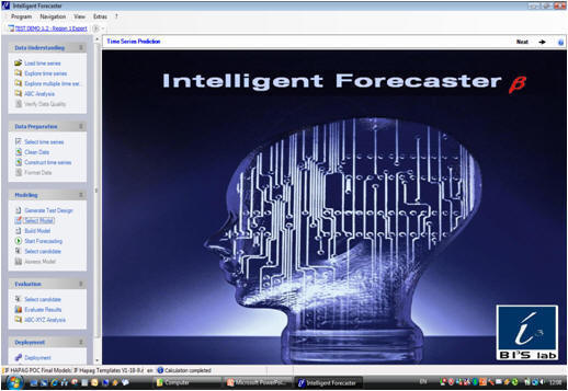 Our flagship product - the forecasting software 'Intelligent Forecaster' - offers state-of-the-art forecasting methods of artificial intelligence incl. neural networks and the novel method class of support vector regression in addition to statistical benchmark methods (e.g. Exponential Smoothing etc) and integrates all functionality of the forecasting process for practitioner experts - including full automation for beginners: